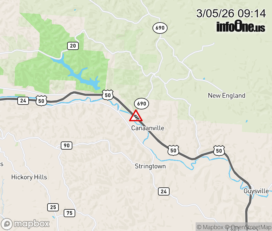 SR-690 CLOSED in BOTH DIRECTIONS from Canaanville Rd to 1.1 miles beyond Dutch Creek Rd (MM: 0.1), due to flooding. Use alternate route. ![]() |