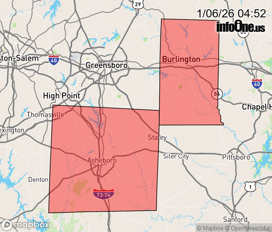Canceled 1/6/26 8:03 AM Dense Fog Advisory issued January 6 at 4:50AM EST until January 6 at 9:00AM EST by NWS Raleigh NC * WHAT... Visibility of one quarter mile or less in dense fog. * WHERE... Alamance and Randolph Counties. * WHEN... Until 9 AM EST this morning. * IMPACTS... Low visibility could make driving conditions hazardous. ![]() |