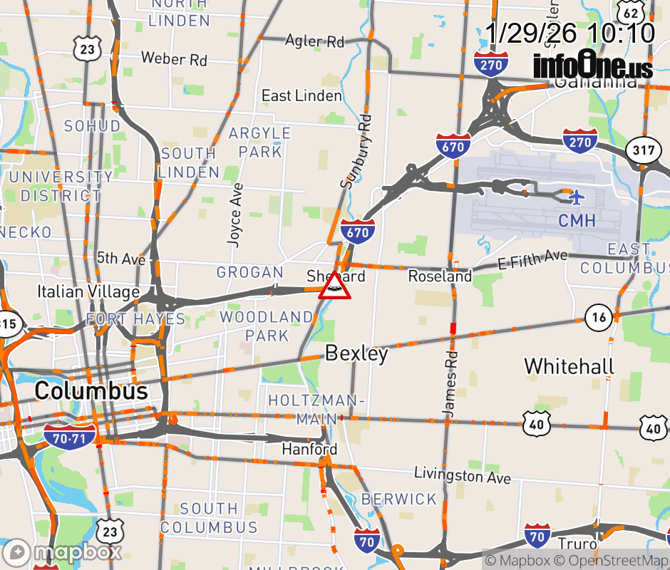 The right lane is blocked on I-670 West beyond US-62/Fifth Ave, due to a crash. ![]() |