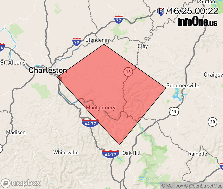 Canceled 11/16/25 12:36 AM Severe Thunderstorm Warning issued November 16 at 12:21AM EST until November 16 at 12:45AM EST by NWS Charleston WV SVRRLX The National Weather Service in Charleston West Virginia has issued a * Severe Thunderstorm Warning for... West central Nicholas County in southeastern West Virginia... East central Kanawha County in central West Virginia... Southwestern Clay County in north central West Virginia... Northwestern Fayette County in southeastern West Virginia... * Until 1245 AM EST. * At 1220 AM EST, a severe thunderstorm was located near Pinch, or 12 miles east of Charleston, moving southeast at 40 mph. HAZARD...60 mph wind gusts. SOURCE...Radar indicated. IMPACT...Expect damage to roofs, siding, and trees. * Locations impacted include... Charleston, Montgomery, Ansted, Cedar Grove, East Bank, Glasgow, Smithers, Gauley Bridge, Pratt, Powellton, Glen, Hawks Nest State Park, Coal Fork, Handley, Swiss, Indore, Bentree, Drennan, and Pond Gap. This includes the following highways... Interstate 77 in West Virginia near mile marker 96. West Virginia Turnpike near mile marker 95. ![]() |