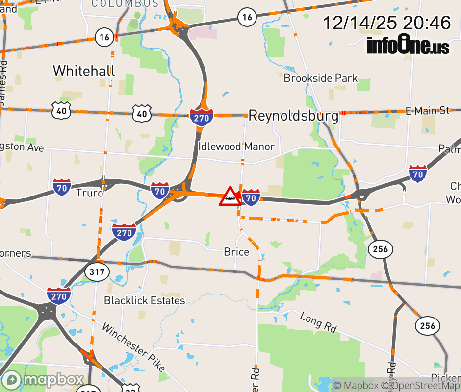 The 2 right lanes are blocked on I-70 West beyond Brice Rd, due to a crash. ![]() |