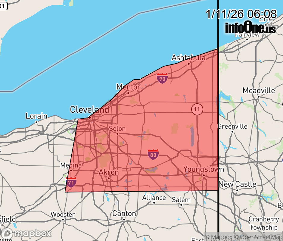 Canceled 1/11/26 7:30 AM Special Weather Statement issued January 11 at 6:07AM EST by NWS Cleveland OH At 606 AM EST, radar indicated snow showers along a line extending from near Painesville to near Warrensville Heights to Rittman, moving east at 40 mph. HAZARDS INCLUDE... Winds to 30 mph... Visibility dropping to less than three quarters of a mile... Up to 1 inch of quick snow accumulation... Locations impacted include... Cleveland, Akron, Youngstown, Warren, Medina, Painesville, Ashtabula, Willowick, Conneaut, Ravenna, Chardon, Fairport Harbor, Geneva-On-The-Lake, Parma, Lakewood, Cuyahoga Falls, Euclid, Mentor, Cleveland Heights, and Strongsville. Use extra caution if you must travel. Rapid changes in visibility and potentially slick roads may lead to accidents. ![]() |