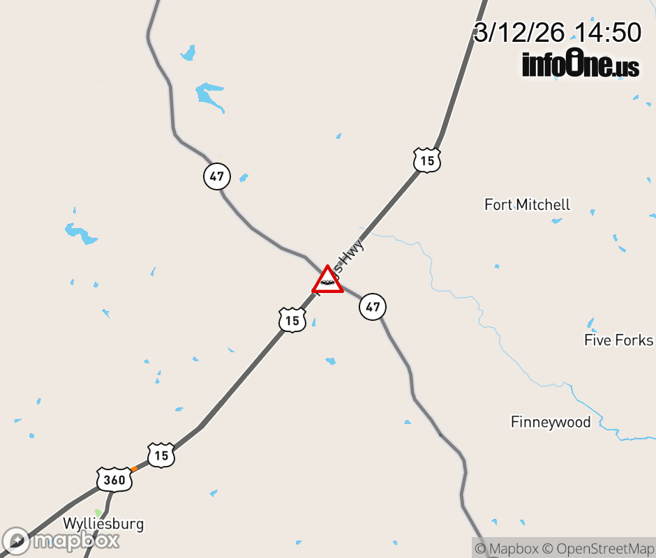 On US-15 North in the County of Charlotte, in the vicinity of Craftons Gate Hwy; Craighead Ln; Seven Winds Ln; Shiloh Church Rd; VA-47N/S, motorists can expect delays due to a vehicle crash. Lane closures exist. ![]() |