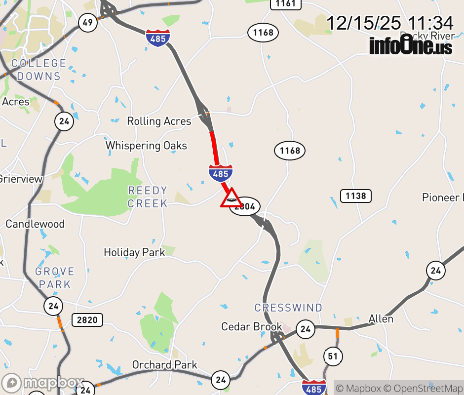 Canceled 12/15/25 12:24 PM Location: I-485I at MM 38.2, NC Vehicle Crash.