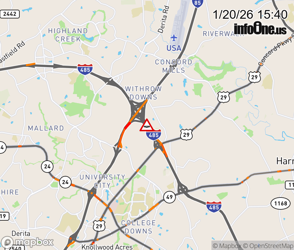 The right lane is closed at Exit 30 (I-85). Updated: Tue 1/20/26 3:40 PM EST ![]() Updated: Tue 1/20/26 3:40 PM EST |