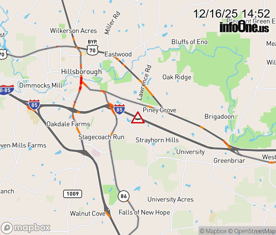 The right lane is closed before Exit 165 (NC 86). Updated: Tue 12/16/25 2:52 PM EST ![]() Updated: Tue 12/16/25 2:52 PM EST |