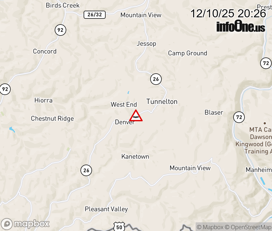Vehicle Crash on WV-26 (5768 S Preston Hwy, Tunnelton). ![]() |