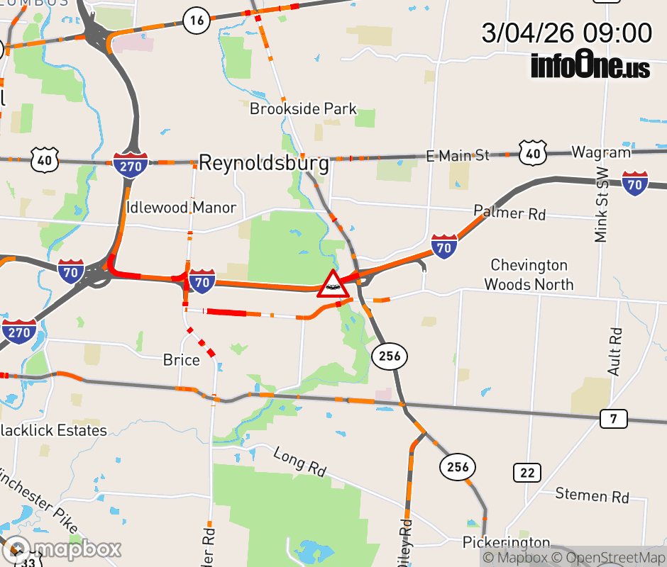The left lane is blocked on I-70 West beyond SR-256, due to a crash. ![]() |