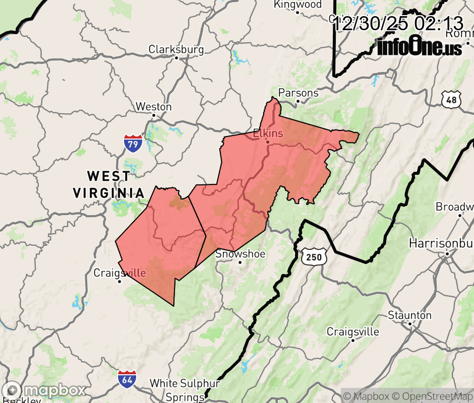 Canceled 12/30/25 9:00 AM Winter Weather Advisory issued December 30 at 2:11AM EST until December 30 at 1:00PM EST by NWS Charleston WV * WHAT... For the Winter Weather Advisory, snow. Additional snow accumulations up to 2 inches. Winds gusting as high as 55 mph. For the Winter Storm Watch, heavy snow possible. Total snow accumulations between 4 and 7 inches possible. Winds could gust as high as 45 mph. * WHERE... Northwest Randolph, Southeast Randolph, and Southeast Webster Counties. * WHEN... For the Winter Weather Advisory, until 1 PM EST this afternoon. For the Winter Storm Watch, from Wednesday afternoon through Thursday morning. * IMPACTS... Travel could be very difficult. The hazardous conditions could impact the Tuesday morning commute. Westerly wind gusts of 45 to 60 mph are likely to result in significant blowing and drifting snow. Additional travel impacts possible for holiday travel on Wednesday evening and Thursday morning. ![]() |
