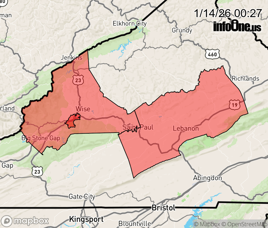 Winter Weather Advisory issued January 14 at 12:25AM EST until January 15 at 11:00AM EST by NWS Morristown TN * WHAT... Snow expected. Total snow accumulations 1 to 3 inches. * WHERE... Russell and Wise Counties. * WHEN... From 3 PM this afternoon to 11 AM EST Thursday. * IMPACTS... Roads, and especially bridges and overpasses, will likely become slick and hazardous. Plan on slippery road conditions. The hazardous conditions could impact the Wednesday evening and Thursday morning commutes. ![]() |