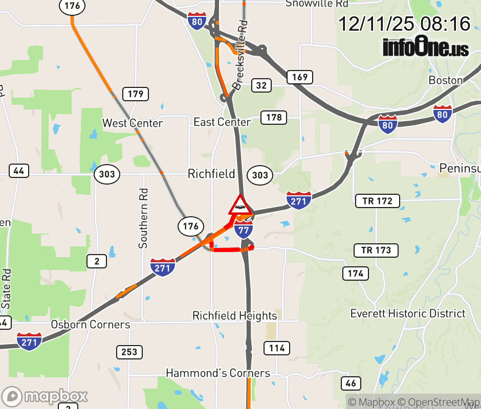 Expect lane closures on Ramp I-77/SR-21 South to I-271 South at I-77/SR-21 South, due to a crash. ![]() |