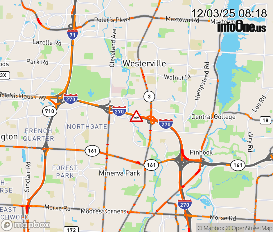 The right lane is blocked on I-270 West at SR-3, due to a disabled vehicle. ![]() |