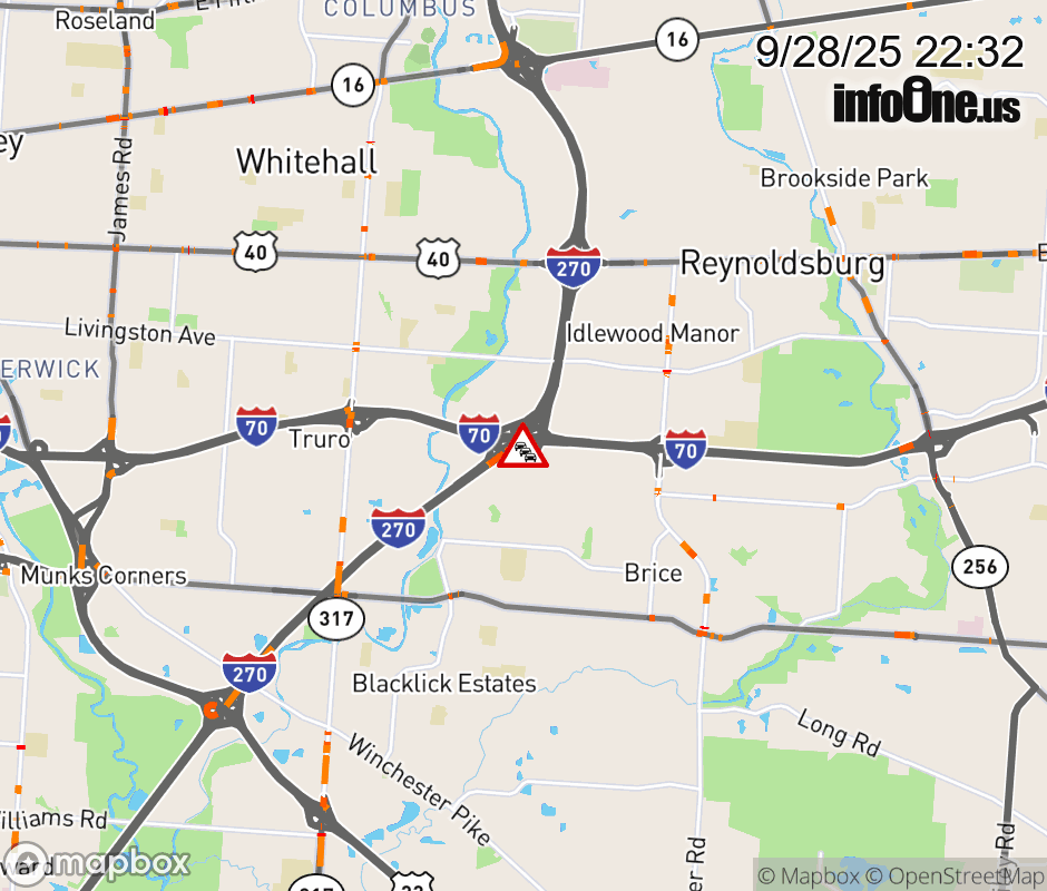 Ramp I-270 North to I-70 East (Eastside) CLOSED because of repairs/maintenance. ![]() |