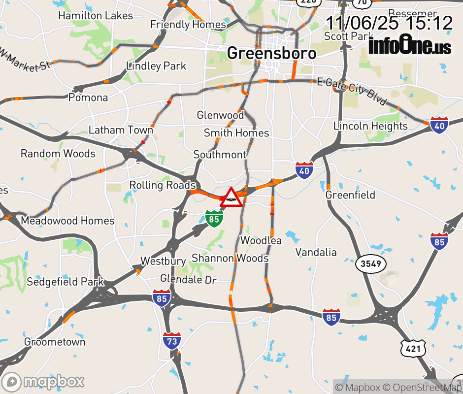 The 2 left lanes are closed at Exit 220 (Randleman Rd) ![]() |