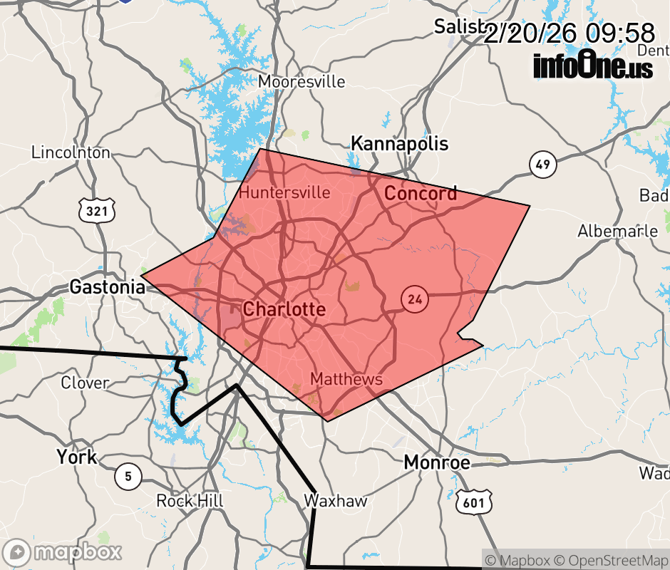 Canceled 2/20/26 10:30 AM Special Weather Statement issued February 20 at 9:56AM EST by NWS Greenville-Spartanburg SC At 956 AM EST, Doppler radar was tracking gusty showers along a line extending from near Huntersville to 8 miles northwest of Uptown Charlotte to 5 miles east of Gastonia. Movement was east at 40 mph. HAZARD...Wind gusts up to 40 mph. SOURCE...Radar indicated. IMPACT...Gusty winds could knock down tree limbs and blow around unsecured objects. Locations impacted include... Charlotte, Huntersville, Concord, and Kannapolis. ![]() |