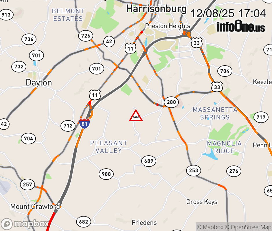 On Rt. 710 in the County of Rockingham, in the vicinity of Grassy Creek Rd; Rt. 711E/W (Rockingham County), motorists can expect delays due to a vehicle crash. All north lanes are closed. All south lanes are closed. ![]() |