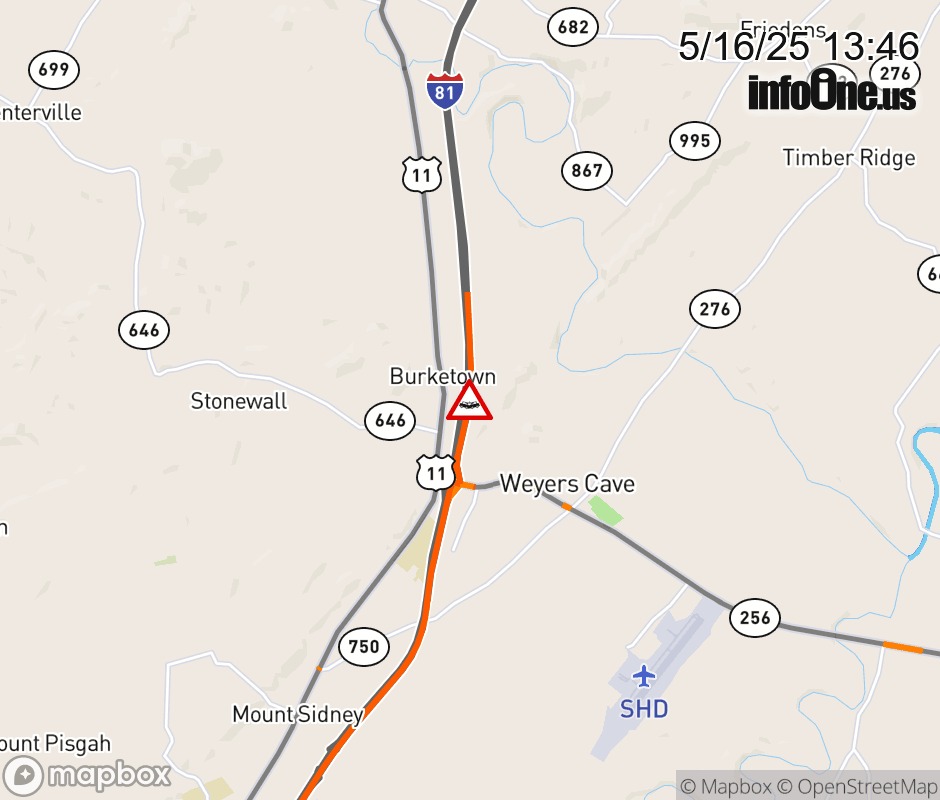On I-81 North at mile marker 236 in the County of Augusta, motorists can expect delays due to a vehicle crash. Updated: Fri 5/16/25 1:46 PM EDT ![]() Updated: Fri 5/16/25 1:46 PM EDT |