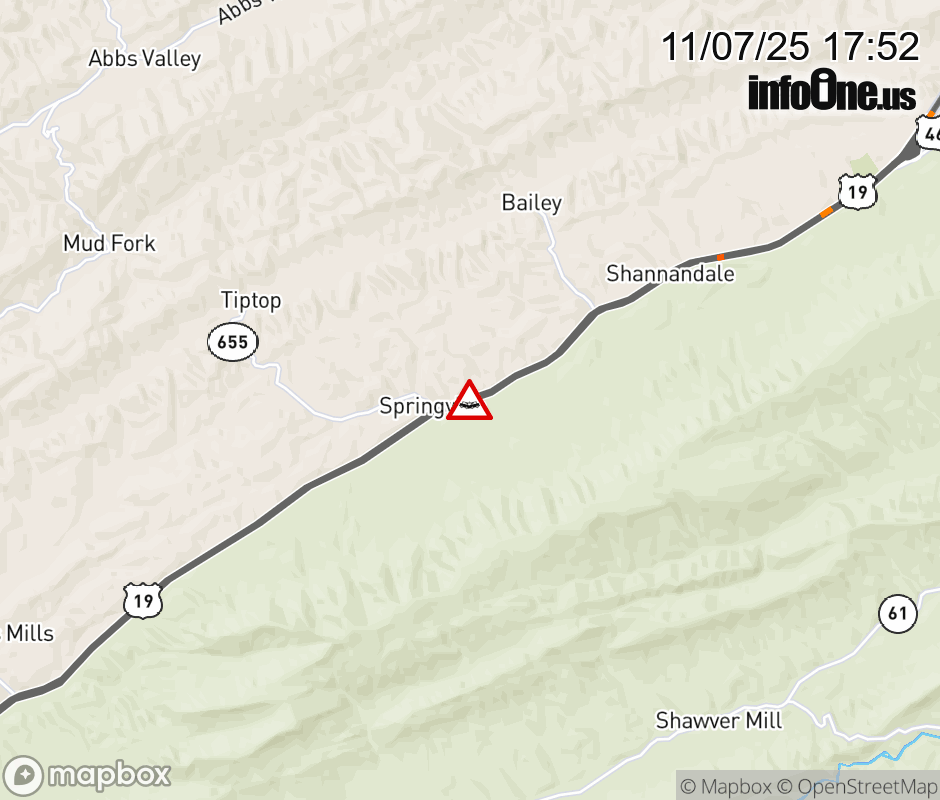 On US-19 North in the County of Tazewell, in the vicinity of Montclair Circle Rd; Mountain Circle Rd; Rt. 1045N/S (Tazewell County), motorists can expect delays due to a vehicle crash. Lane closures exist. ![]() |