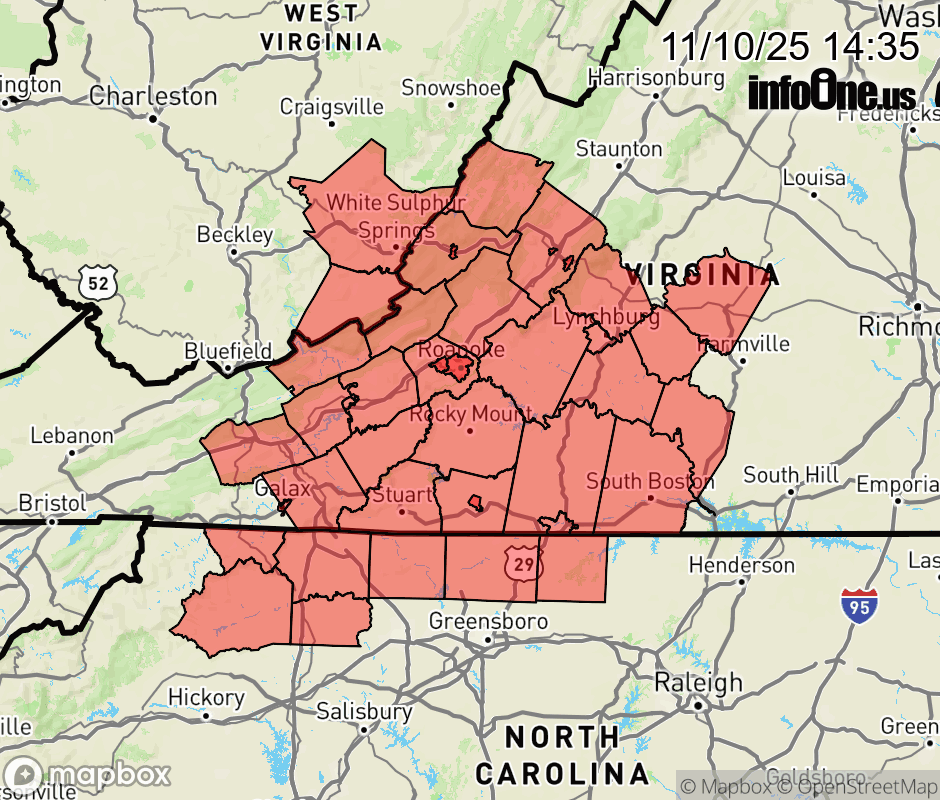 Canceled 11/11/25 10:00 AM Special Weather Statement issued November 10 at 2:34PM EST by NWS Blacksburg VA Snow showers are possible tonight through Tuesday morning. Affected locations may see any bridges, walkways, and perhaps a few roads become icy once precipitation begins to fall and temperatures drop overnight. The first snow of the season is usually the most impactful for drivers. Slick spots will likely develop on roadways, especially bridges and overpasses. If you are traveling and encounter adverse winter driving conditions, reduce speed and make sure headlights are on. ![]() |