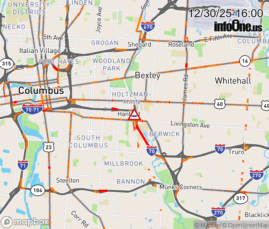 The 2 left lanes are blocked on I-70 East at Main St, due to a crash. ![]() |