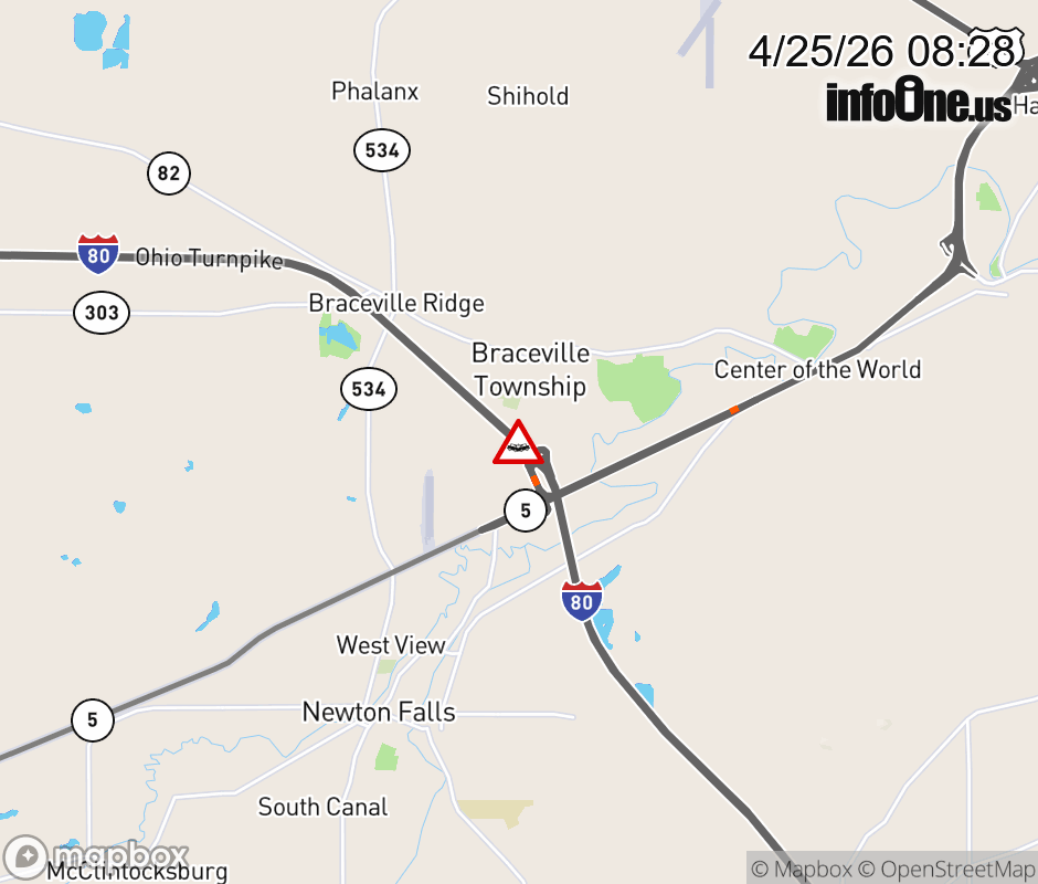 Expect lane closures on I-80 West (Ohio Turnpike) beyond SR-5, due to a crash. ![]() |