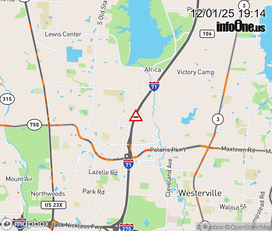 The right lane is blocked on I-71 North beyond Polaris Pkwy/Gemini Place, due to a crash. ![]() |