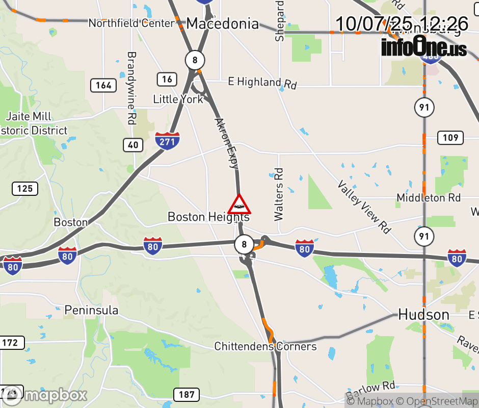 Expect lane closures on SR-8 North beyond I-80 (Ohio Turnpike), due to a crash. Updated: Tue 10/7/25 12:26 PM EDT ![]() Updated: Tue 10/7/25 12:26 PM EDT |