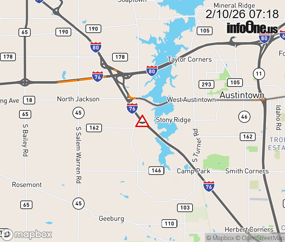 Expect lane closures on I-76 West (Ohio Turnpike) beyond SR-7, due to a crash.