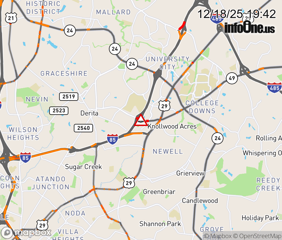 The left off ramp lane is closed at University City Blvd. ![]() |