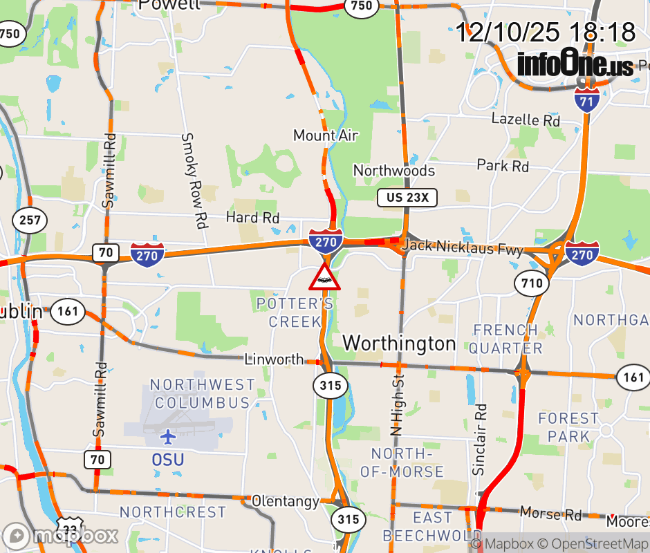 Expect lane closures on SR-315 South beyond I-270 East, due to a crash. ![]() |