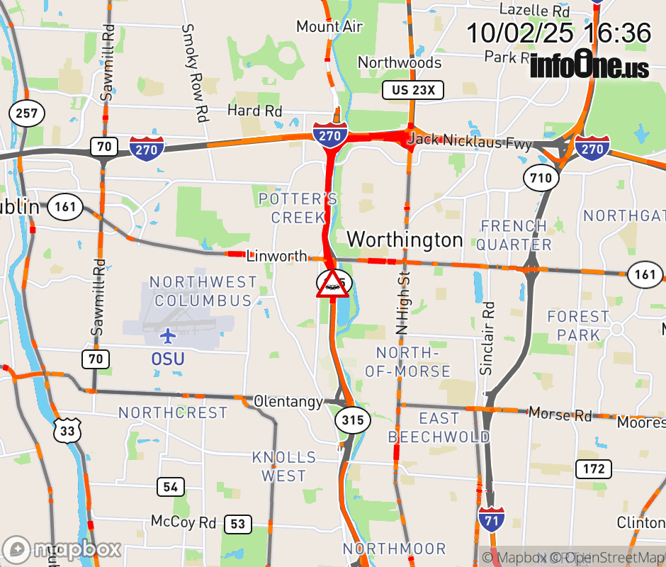 The right lane is blocked on SR-315 South beyond SR-161, due to a crash. Updated: Thu 10/2/25 4:36 PM EDT ![]() Updated: Thu 10/2/25 4:36 PM EDT |