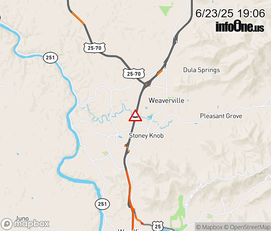 The right shoulder is closed 1 mile after Exit 19, US 25/70. Updated: Mon 6/23/25 7:06 PM EDT ![]() Updated: Mon 6/23/25 7:06 PM EDT |