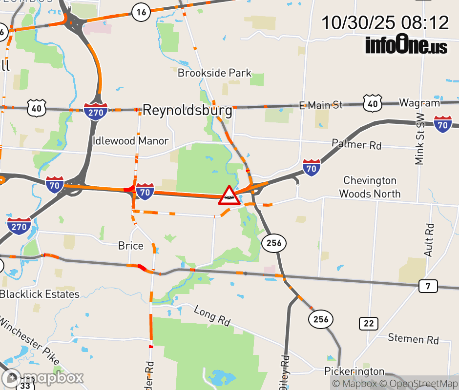 The right shoulder is blocked on I-70 West beyond SR-256, due to a crash. ![]() |