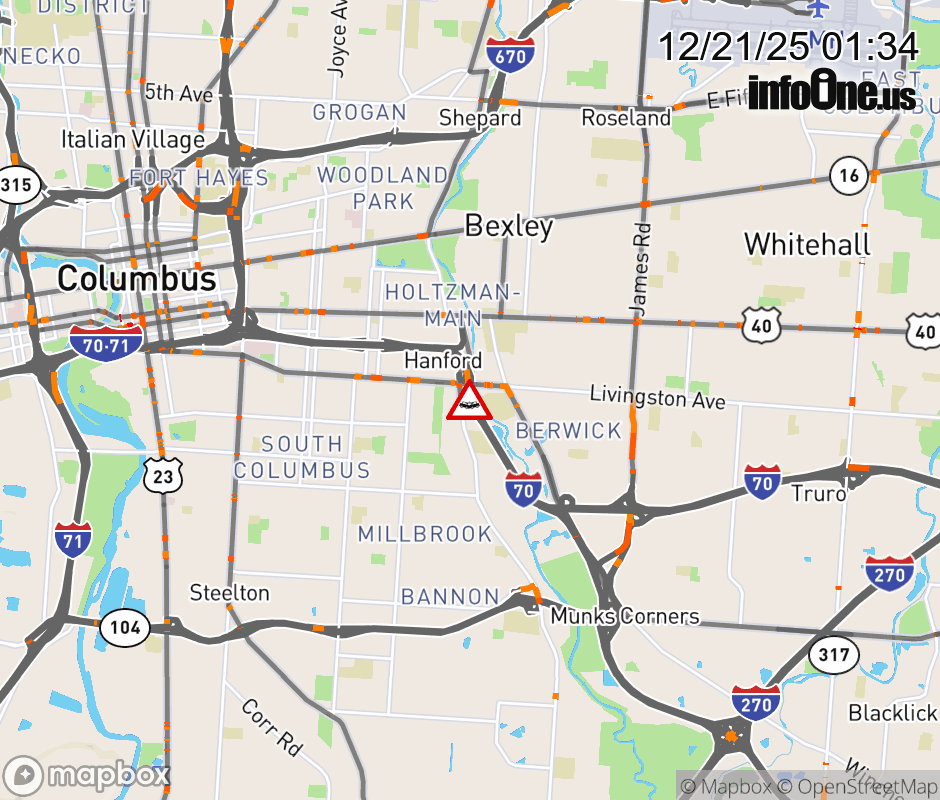 The 2 right lanes are blocked on I-70 East at Alum Creek Dr/Livingston Ave, due to a crash. ![]() |