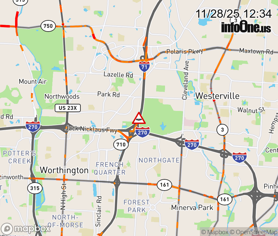 All lanes are closed on I-71 South at I-270 West (North Side), due to a crash. ![]() |