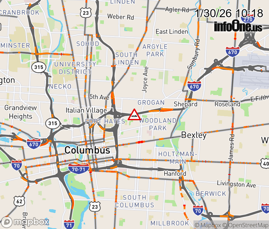 The left shoulder is blocked on I-670 East beyond I-71 South, due to a disabled vehicle. ![]() |