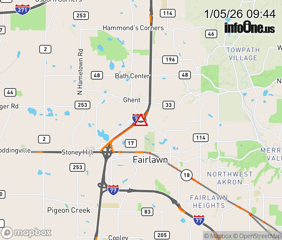 The left lane is blocked on I-77 North at Ghent Rd, due to a crash. Updated: Mon 1/5/26 9:44 AM EST ![]() Updated: Mon 1/5/26 9:44 AM EST |