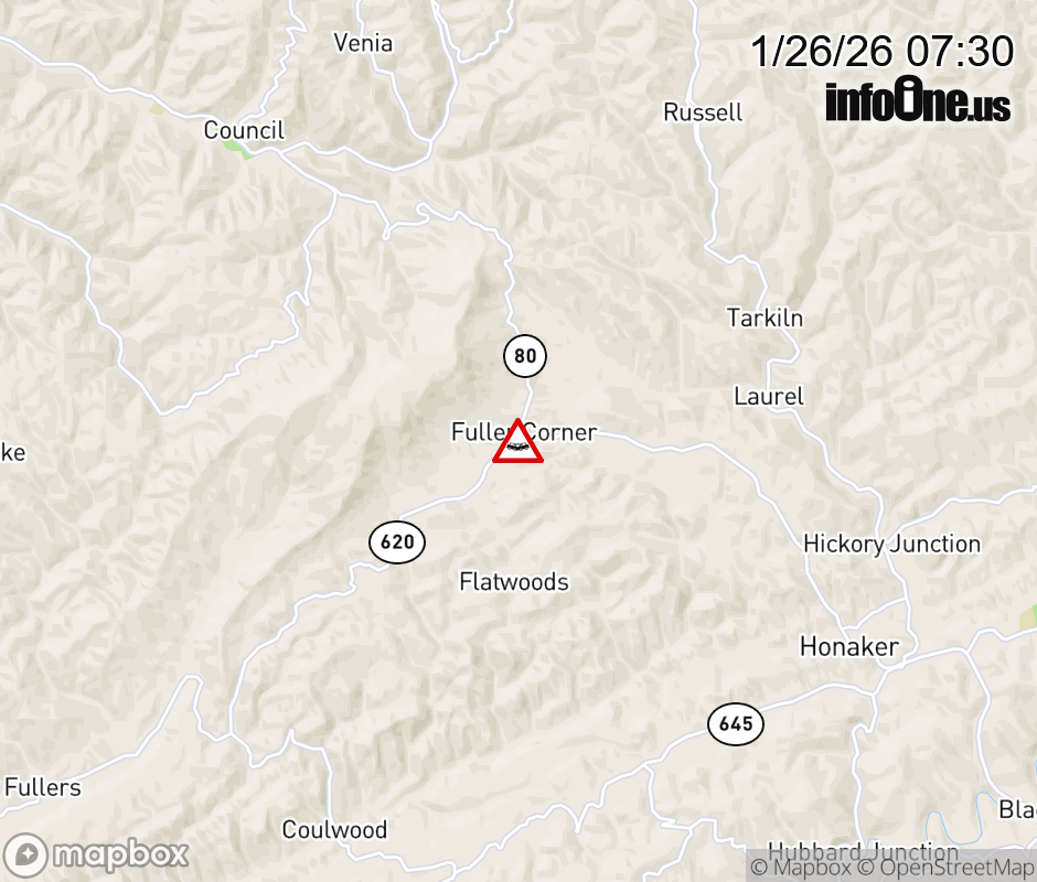 On Rt. 620 North in the County of Russell, in the vicinity of Bachelor Hill Dr; Redbud Hwy; VA-80N/S, motorists can expect delays due to a vehicle crash. Lane closures exist. Updated: Mon 1/26/26 7:30 AM EST ![]() Updated: Mon 1/26/26 7:30 AM EST |