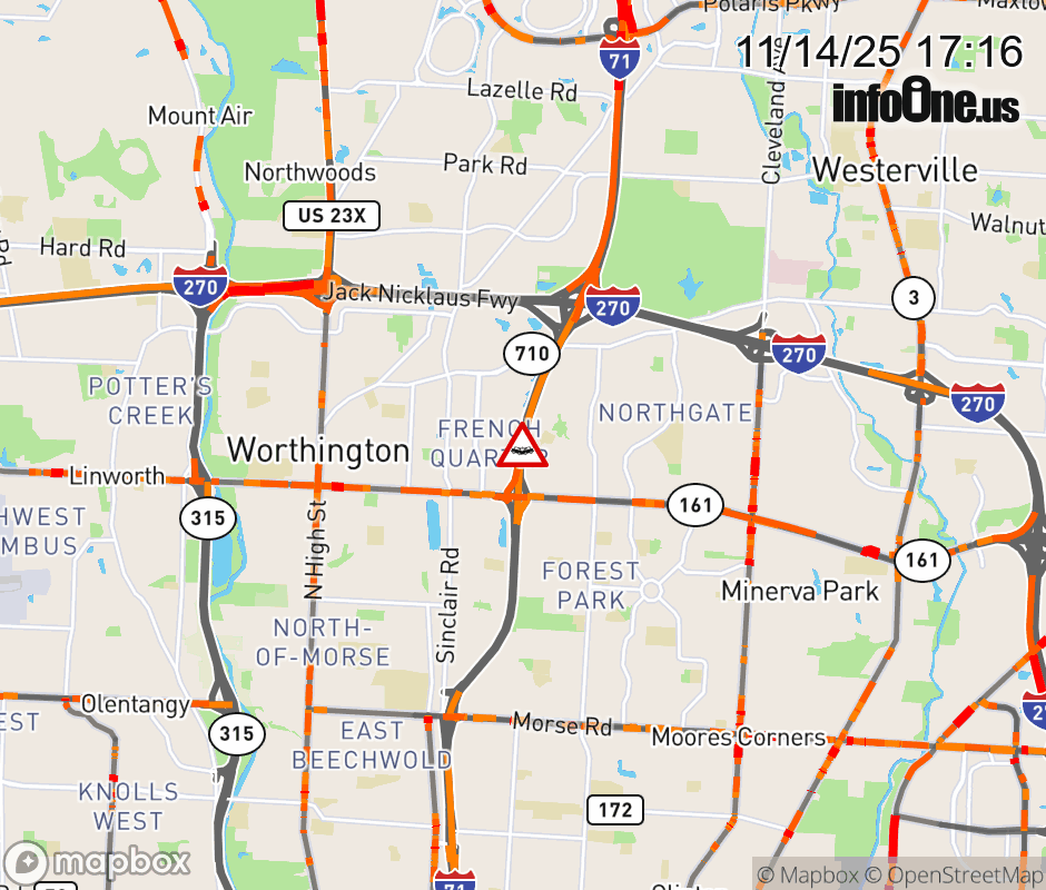 The left shoulder is blocked on I-71 North beyond SR-161/Dublin Granville Rd, due to a crash. Updated: Fri 11/14/25 5:16 PM EST ![]() Updated: Fri 11/14/25 5:16 PM EST |