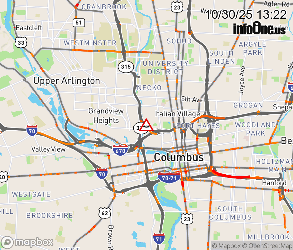 The right lane is blocked on Ramp SR-315 South to I-670 East, due to a crash. Updated: Thu 10/30/25 1:22 PM EDT ![]() Updated: Thu 10/30/25 1:22 PM EDT |