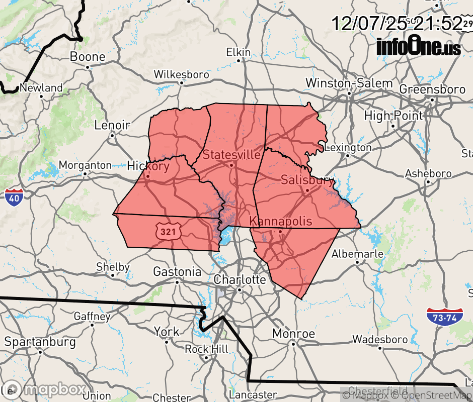 Canceled 12/8/25 5:43 AM Dense Fog Advisory issued December 7 at 9:49PM EST until December 8 at 7:00AM EST by NWS Greenville-Spartanburg SC * WHAT... Visibility one quarter mile or less in dense fog. * WHERE... Alexander, Cabarrus, Catawba, Davie, Iredell, Lincoln, and Rowan Counties. * WHEN... Until 7 AM EST Monday. * IMPACTS... Low visibility could make driving conditions hazardous. ![]() |