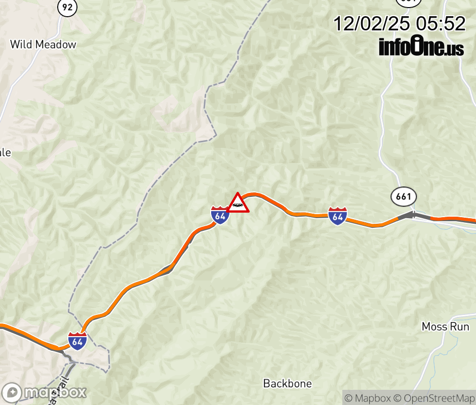 On I-64 at mile marker 3.8 in the County of Alleghany, motorists can expect delays due to a tractor trailer crash. The east left shoulder and left lane are closed. Updated: Tue 12/2/25 5:52 AM EST ![]() Updated: Tue 12/2/25 5:52 AM EST |
