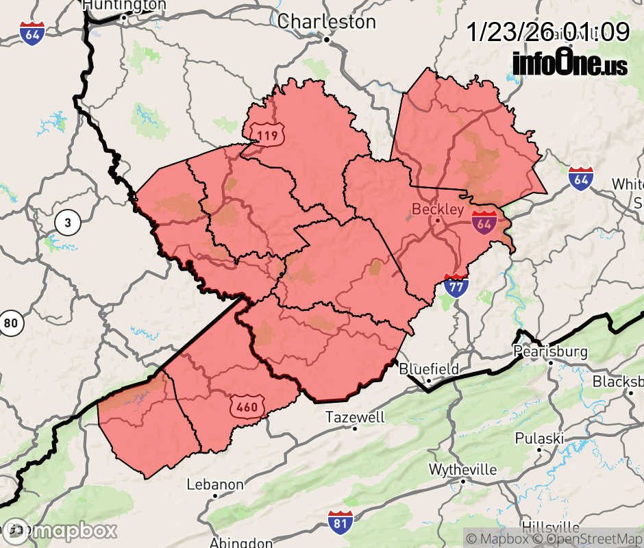 Canceled 1/23/26 9:09 AM Winter Storm Warning issued January 23 at 1:08AM EST until January 26 at 7:00AM EST by NWS Charleston WV * WHAT... Heavy mixed precipitation expected. Total snow and sleet accumulations between 3 and 8 inches and ice accumulations between two tenths and four tenths of an inch. * WHERE... Portions of southwest Virginia and southeast and southern West Virginia. * WHEN... From 7 AM Saturday to 7 AM EST Monday. * IMPACTS... Power outages and tree damage are likely due to the ice. Travel could be nearly impossible. The hazardous conditions could impact the Monday morning commute. ![]() |