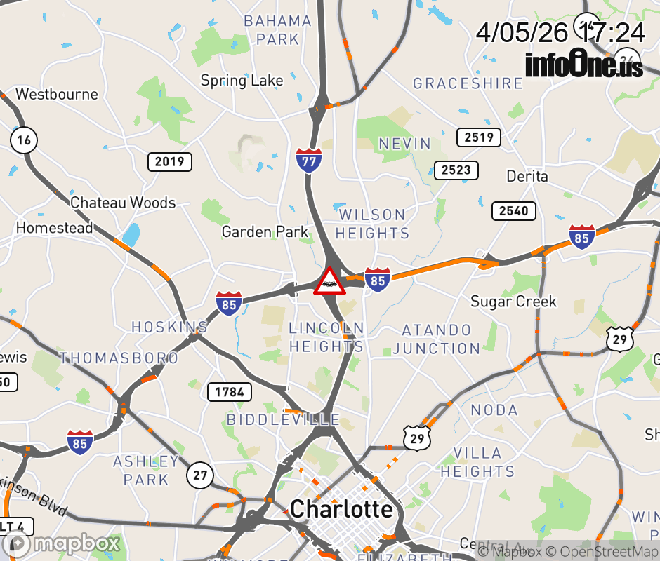 The right shoulder is closed near Exit 38 (I-77). ![]() |