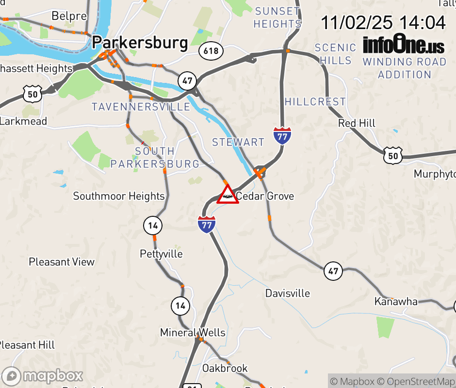 Vehicle Crash on WV-95 (Camden Ave) & I-77 South at MM 173 in Parkersburg. ![]() |