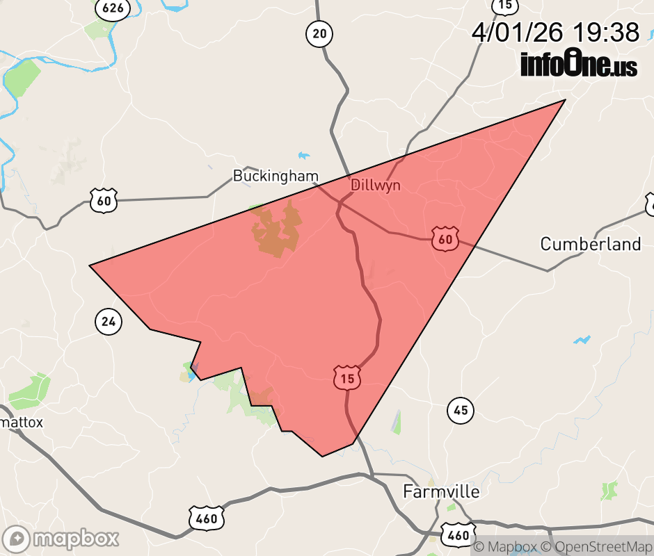 Canceled 4/1/26 7:52 PM Severe Thunderstorm Warning issued April 1 at 7:37PM EDT until April 1 at 8:15PM EDT by NWS Blacksburg VA At 736 PM EDT, a severe thunderstorm was located near Andersonville, or 8 miles south of Buckingham, moving east at 30 mph. HAZARD...60 mph wind gusts and quarter size hail. SOURCE...Radar indicated. IMPACT...Hail damage to vehicles is expected. Expect wind damage to roofs, siding, and trees. Locations impacted include... Dillwyn... Toga... Andersonville... and Sheppards. ![]() |