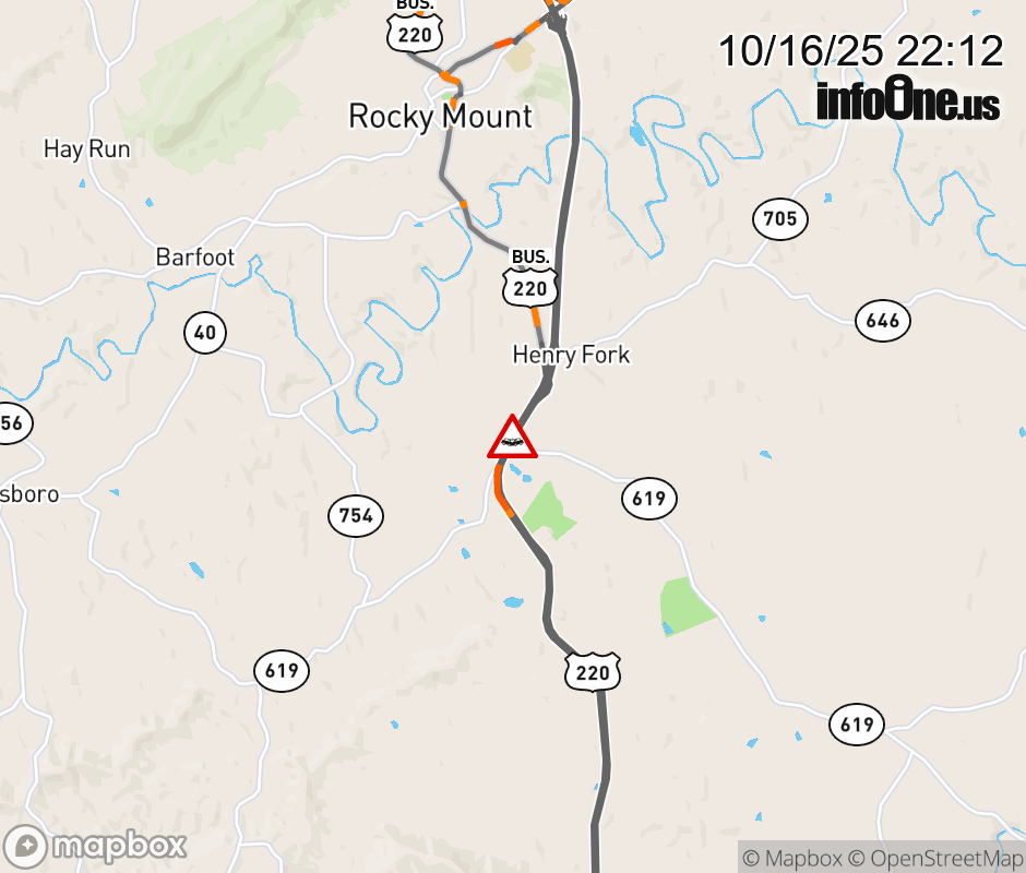 On US-220 in the County of Franklin, in the vicinity of Cassell Dr; Sontag Rd; Rt. 816N/S (Franklin County), motorists can expect delays due to a tractor trailer crash. All south lanes are closed. Updated: Thu 10/16/25 10:12 PM EDT ![]() Updated: Thu 10/16/25 10:12 PM EDT |