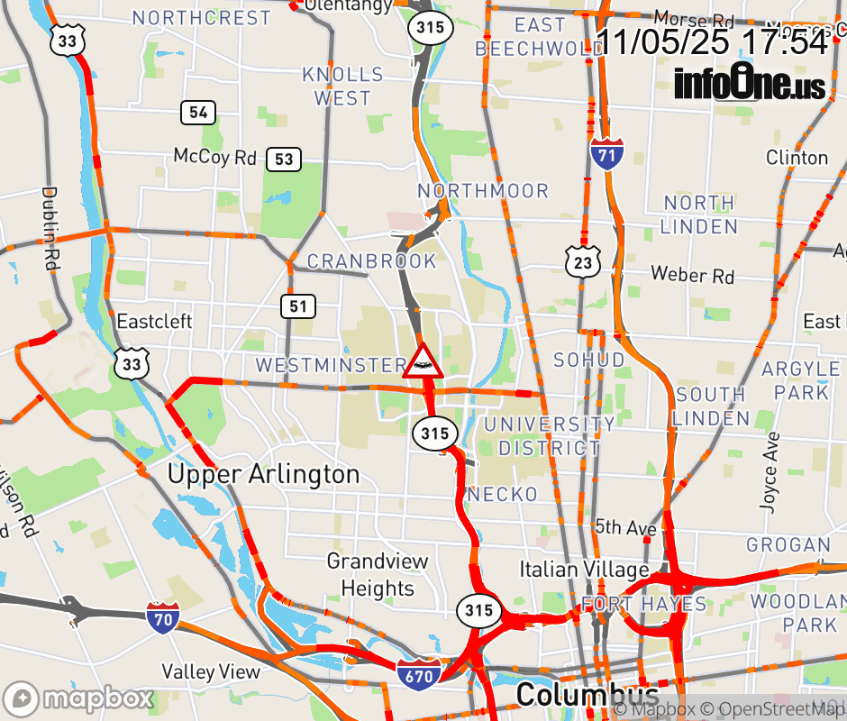 The right shoulder is blocked on SR-315 North beyond W Lane Ave, due to a crash. Updated: Wed 11/5/25 5:54 PM EST ![]() Updated: Wed 11/5/25 5:54 PM EST |