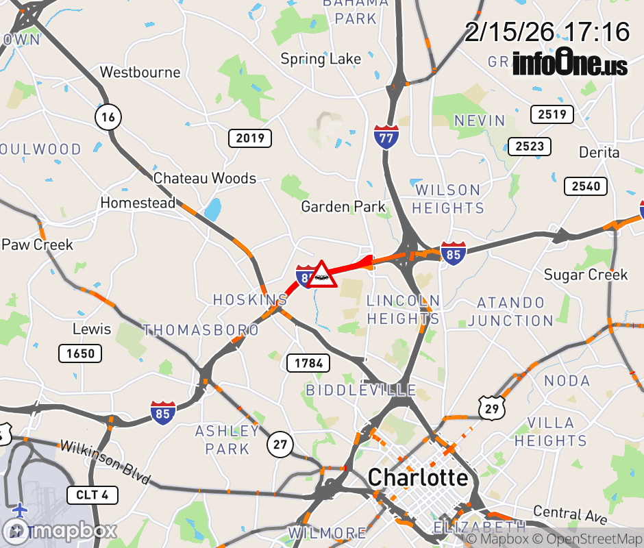 The right shoulder is closed near Exit 36 (Beatties Ford Rd). Updated: Sun 2/15/26 5:16 PM EST ![]() Updated: Sun 2/15/26 5:16 PM EST |