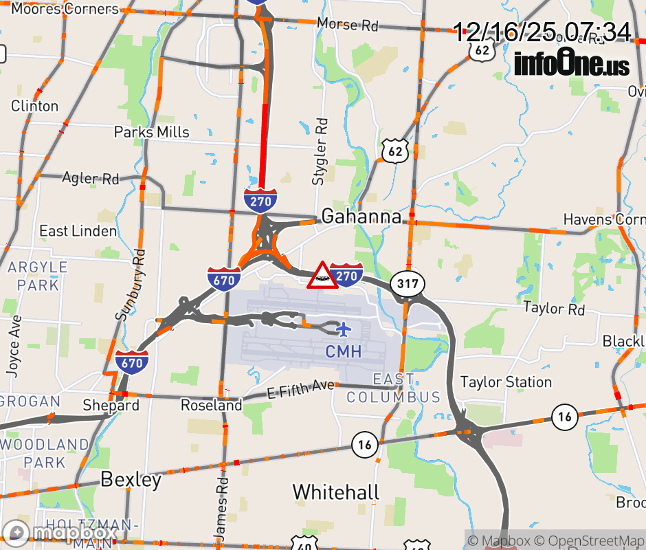 Expect lane closures on I-270 North at US-62 East/Johnstown Rd, due to a crash. ![]() |